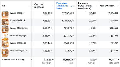 In this ABO campaign, we used the same two audiences and the same budget. We chose to advertise the best-selling products to ensure that we would generate a minimum number of purchases (we are testing the advertising approach after all, not the product).