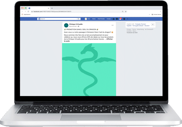 Le passage de l’entreprise à l’émission Dans l’œil du Dragon, combiné à une couverture publicitaire complète [publicité, landing page, séquence courriel de panier abandonné] basée sur le retargeting a permis à La Clinique Virtuelle de faire exploser son chiffre d’affaires a plus de 234 000$ en seulement 48h.