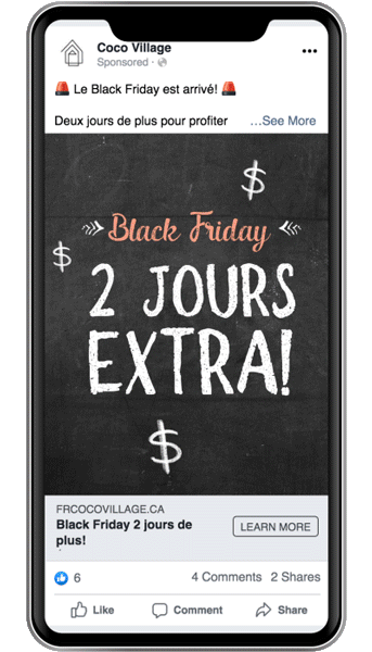 Automatiquement, le Black Friday doublait les prix pour atteindre 1000 personnes avec une publicité Facebook. C’est énorme!