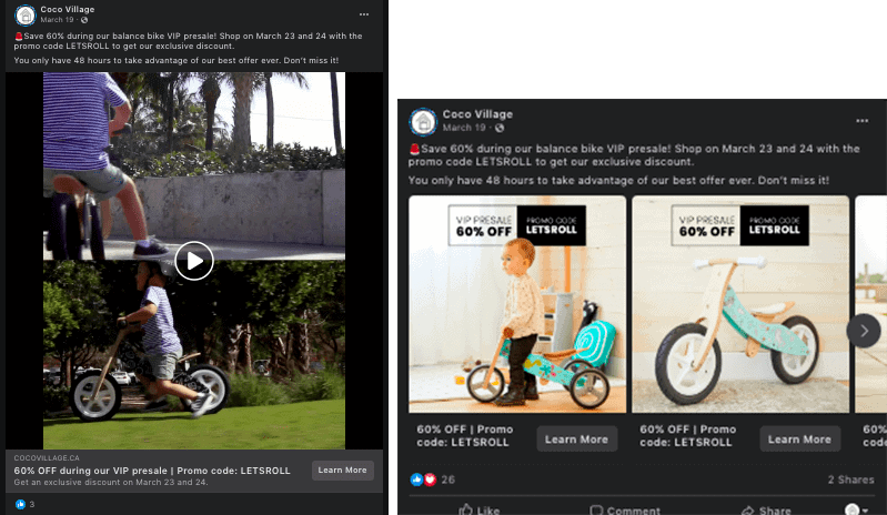 On March 23rd, we launched our sales campaign on the warm audience of potential buyers that visited the funnel and thus became leads. Here are the ads that were used.