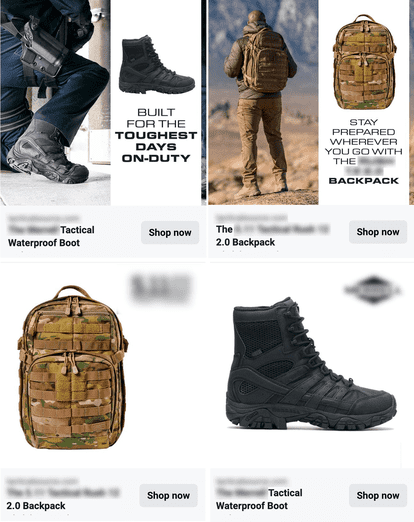 As you can see, we created a “Lifestyle” (‘action shot’) version and a “Product” version (product photo on a white background) that simply included the logo of the brand. We used the same copy for each version.