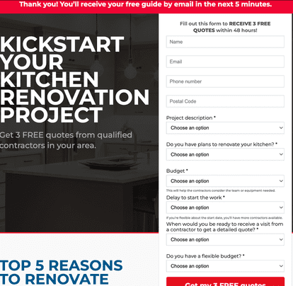 We changed the header image to match our new approach, Start your renovations this spring, and also added an element of time to encourage prospects to take action.