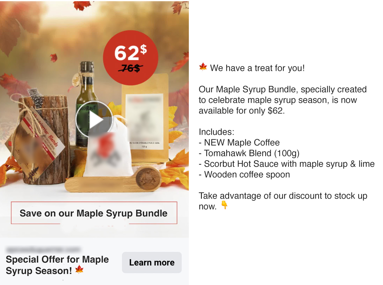 We decided to kick off March using a different approach. Maple syrup season was approaching, so we pitched two special offers to our client.