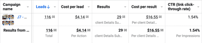 This week’s test starts here, with a personalized conversion campaign (Lead Generation) that has a cost per conversion that is known to be high and a particularly strong click-through rate despite that.