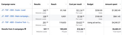 Want further proof? Here’s another test we did for our Facebook Ads Squad Lead Gen campaign.