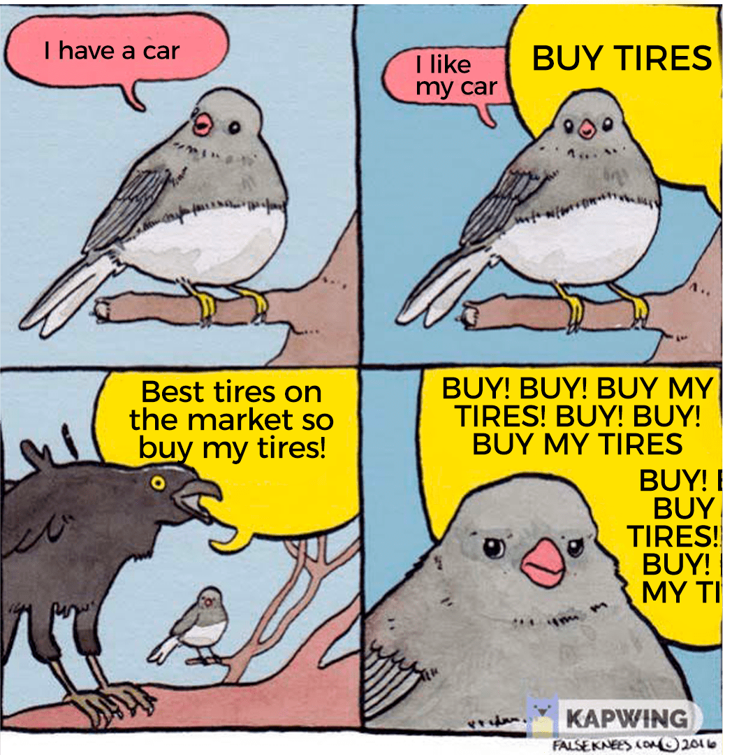 The indirect approach is much more educational. Your prospect may not know what his problem is, we need to point it out to him. He may not yet trust your product/service because it’s new to him.