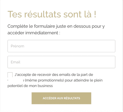 Once the prospect has completed the quiz, we invite them to sign up to receive their results.