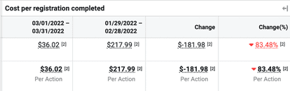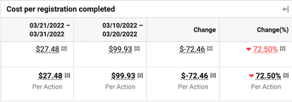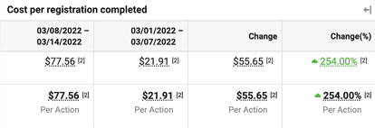 The problem is that the success of this campaign didn’t last long. The cost per registration skyrocketed just a week after launching.