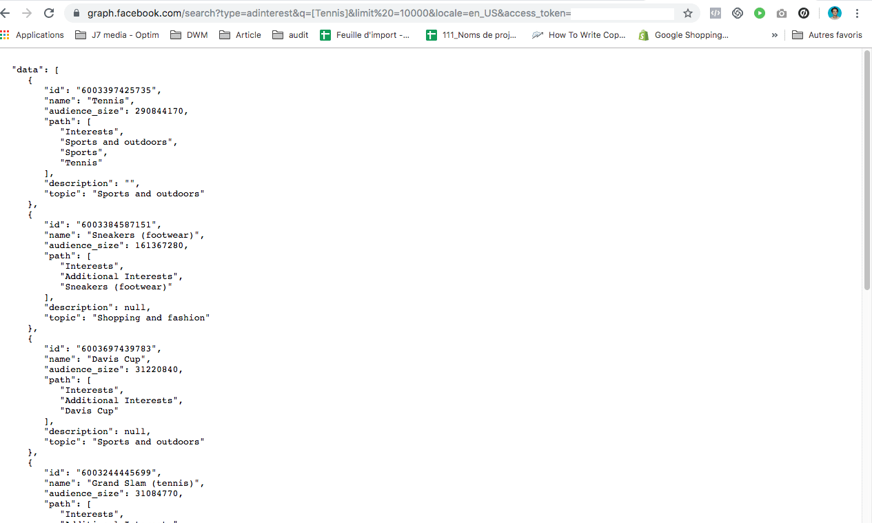 https://graph.facebook.com/search?type=adinterest&q=[Tennis]&limit =10000&locale=en_US&access_token=your-access-token