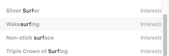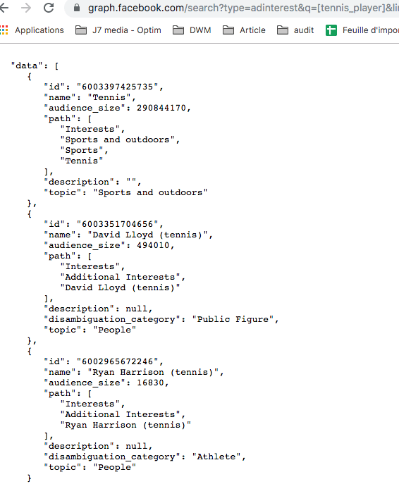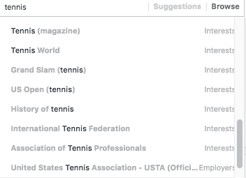 In other words, instead of using a simple interest like Tennis (which was the subject of my previous article), you’re given all the interests related to this sport as well as their exact audience size!