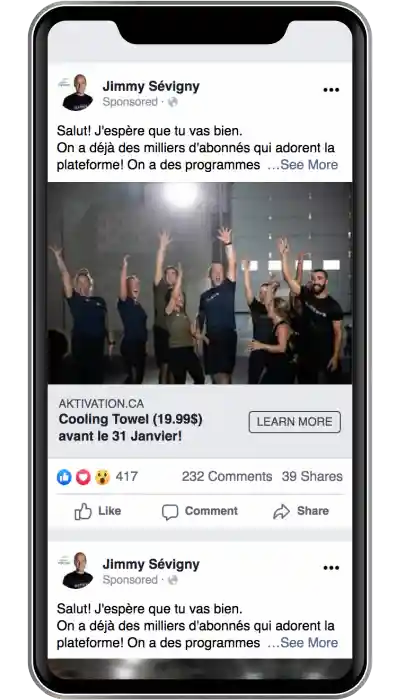 Jimmy Sévigny est un coach sportif et influenceur québécois qui compte plus de 330 000 followers sur Facebook et Instagram. Il propose de nombreux services à sa communauté comme des compléments alimentaires, mais aussi des entraînements Méga Workout dans toute la province !
