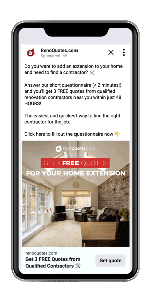 Cela nous a permis de créer différentes campagnes pour chacune des verticales (types de travaux) possibles (cuisine, salle de bain, toiture, etc.), mais aussi d’être beaucoup plus pertinents dans notre discours (et de voir la qualité des leads s’améliorer nettement).