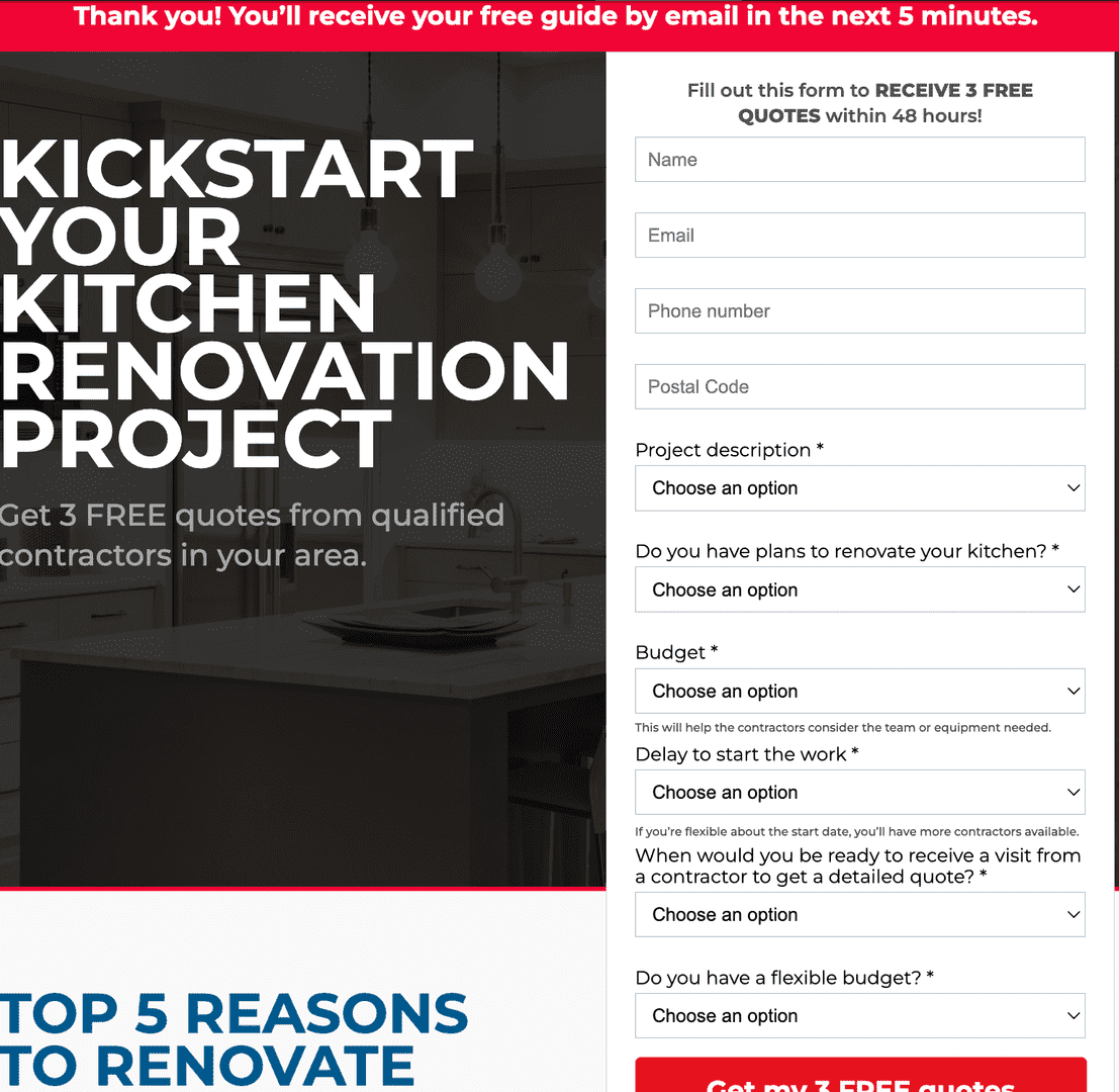 On note un changement d’image dans le fond qui s’adapte justement à notre nouvelle tagline : Renovation this Spring. On ajoute donc un élément de temps pour passer à l’action.