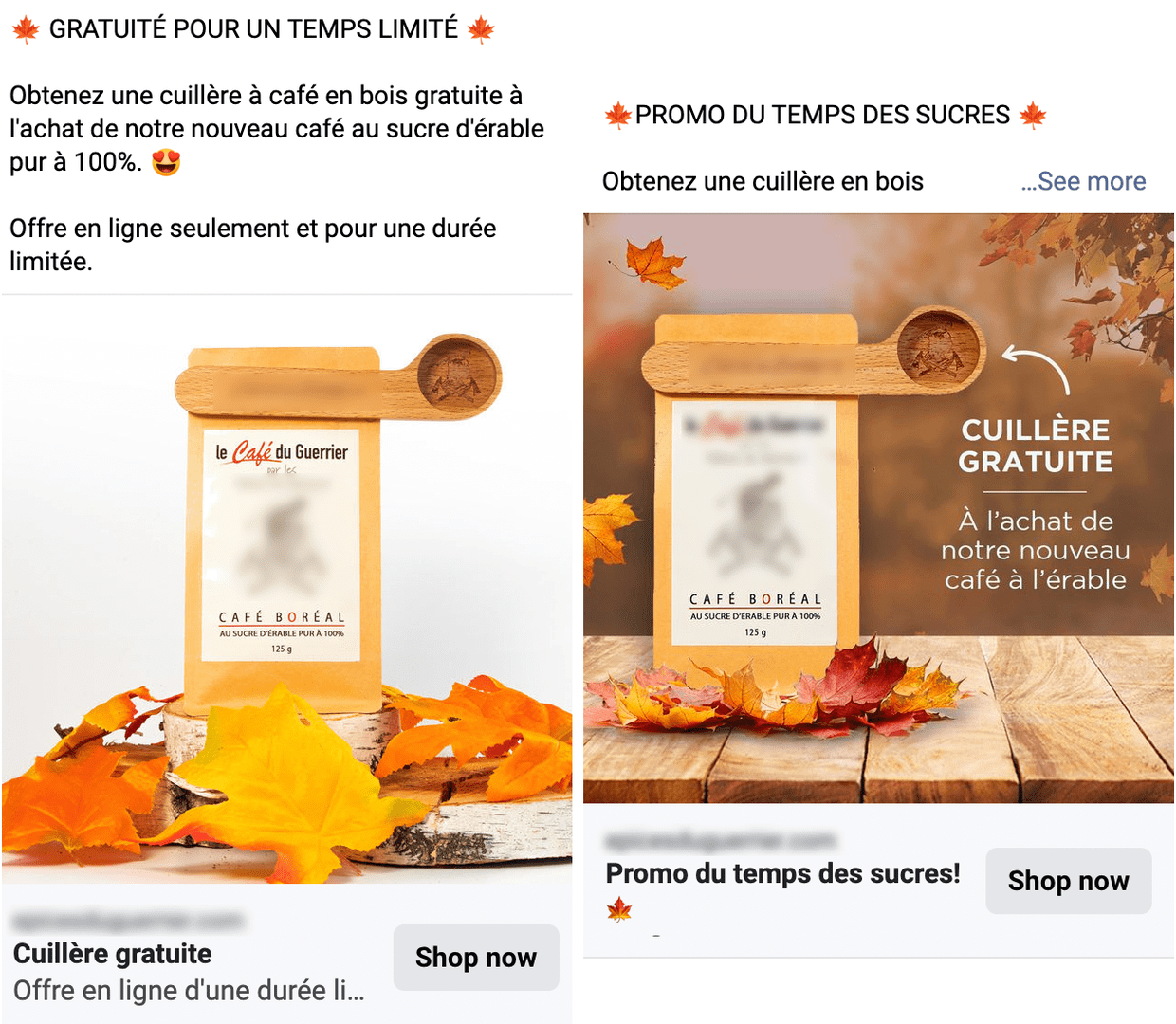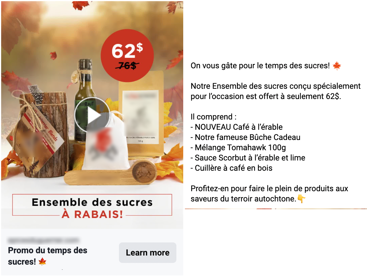 Pour le mois de mars, on décide de faire autrement. Le temps des sucres approche (la période où l’on fait le sirop d’érable) et on propose une offre à l’annonceur.