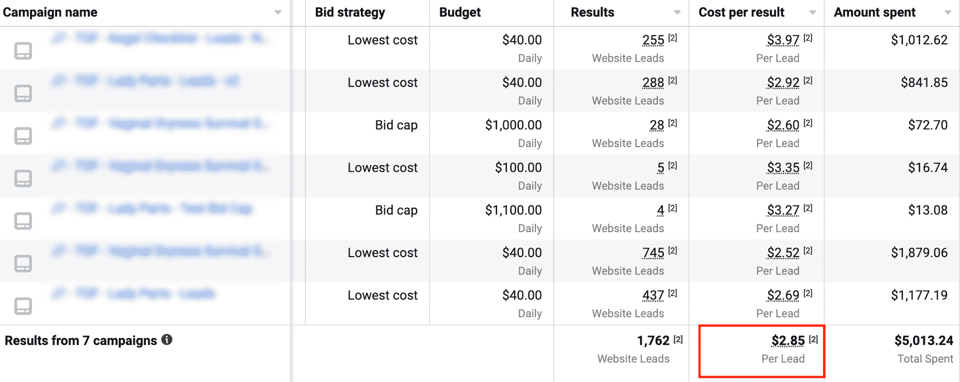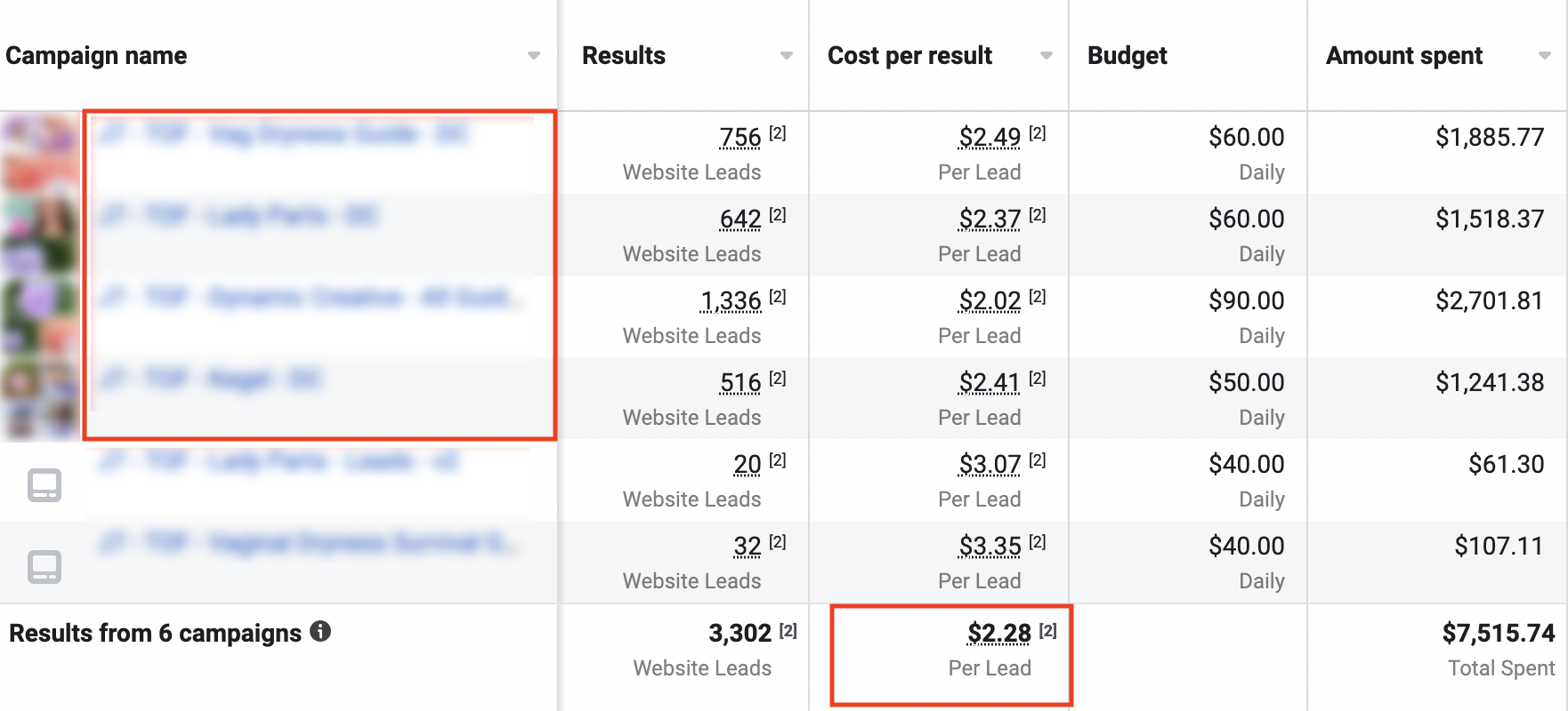 La cliente ici est une infopreneure qui change constamment ses budgets chaque mois, alternant de grosses périodes avec de très petits budgets. Le problème, évidemment, c’est que le résultat ne peut pas toujours suivre notre volonté.