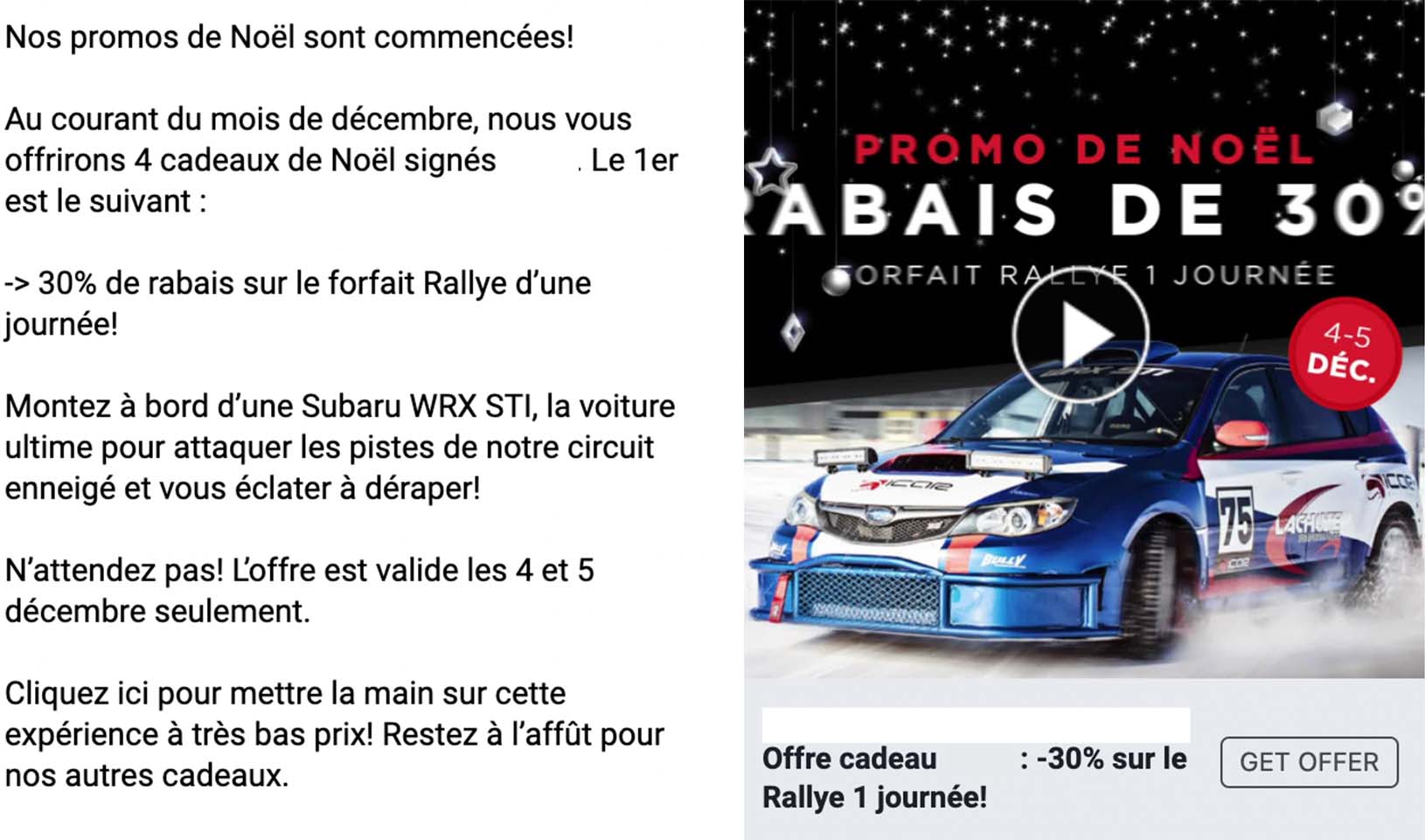 Voici le type de contenu que nous avons produit pour un annonceur qui vend des expériences en voiture de sport.