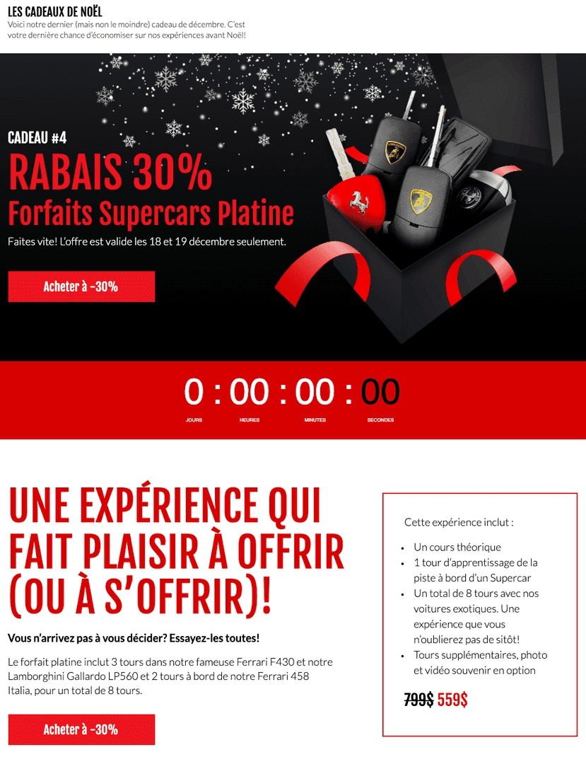 On a donc un enchaînement de dates et de produits bien spécifiques pour la moitié du mois. Et puisque c’est un produit spécifique, il nous faut une page de vente dédiée pour ne pas perdre l’internaute sur le site.