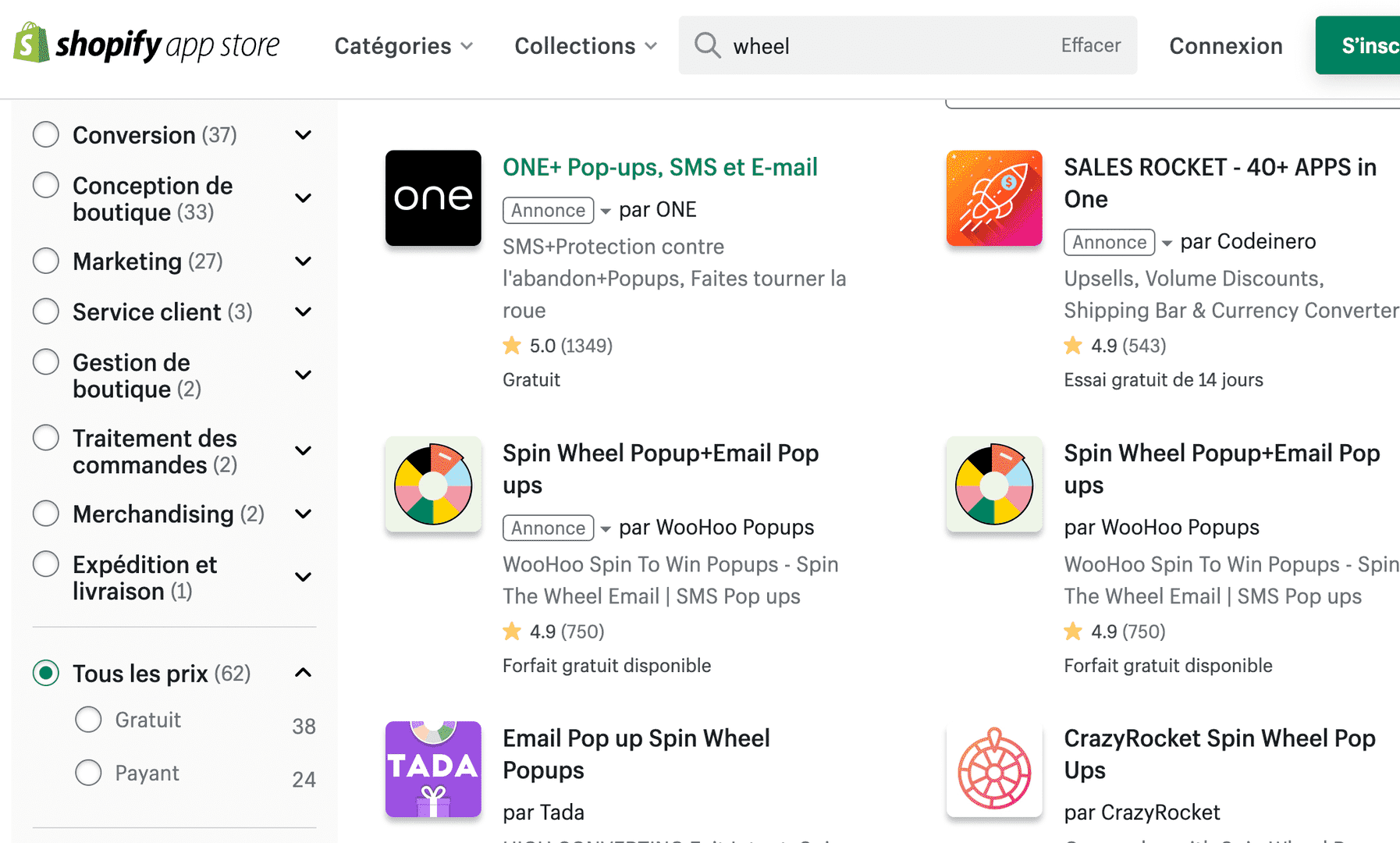 Voici le résultat qu’on peut trouver sur l’application de la roue qui s’affichait de manière organique pour tous les visiteurs.