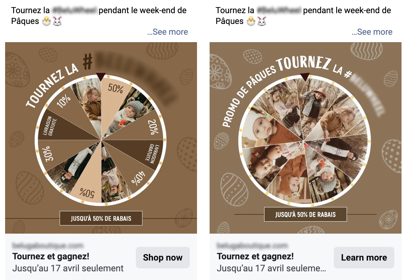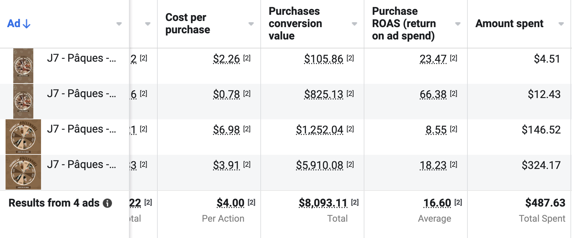 Depuis Shopify, nous avons identifié deux pics de ventes le jour du lancement de cette roue ainsi que le 15 avril. L’organique a aidé, mais ces publicités ont pris 99% du budget.