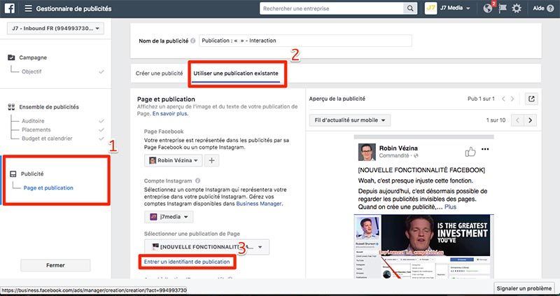 Pour que vos publicités soient visibles sur votre page Facebook, les étapes à suivre sont :