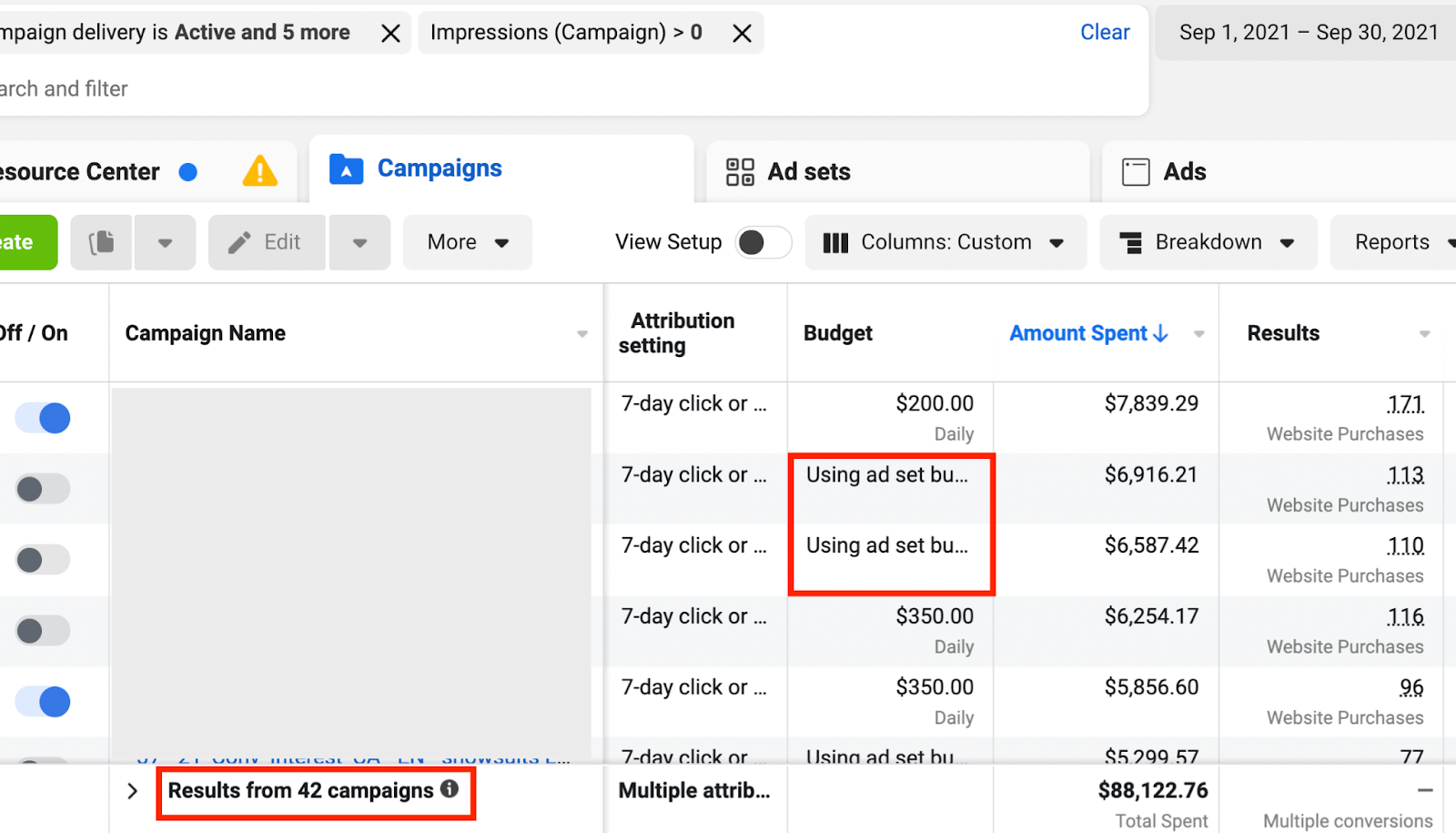 Avec ce « nettoyage », nous avons dépensé moins qu’en septembre. En fait, un budget total de 8 700$ a été retiré des campagnes entre septembre et octobre…