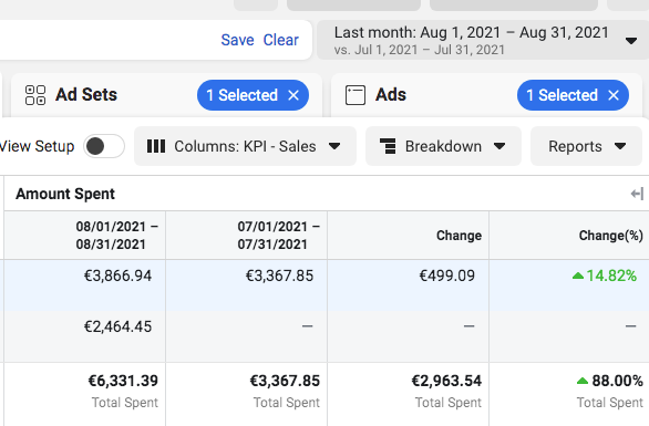 Nous avons augmenté les dépenses du compte en acquisition de 88% et cela s’est répercuté forcément sur notre retargeting dès le premier mois.