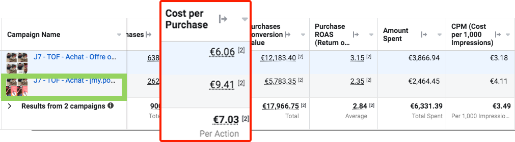 Et finalement, ce n’est pas grave que ça coûte plus cher si vous vendez proportionnellement plus derrière. Les créatifs peuvent toujours être travaillés pour ensuite faire baisser ce coût. C’est aussi ça être media buyer : détecter une approche qui fonctionne, puis l’augmenter.